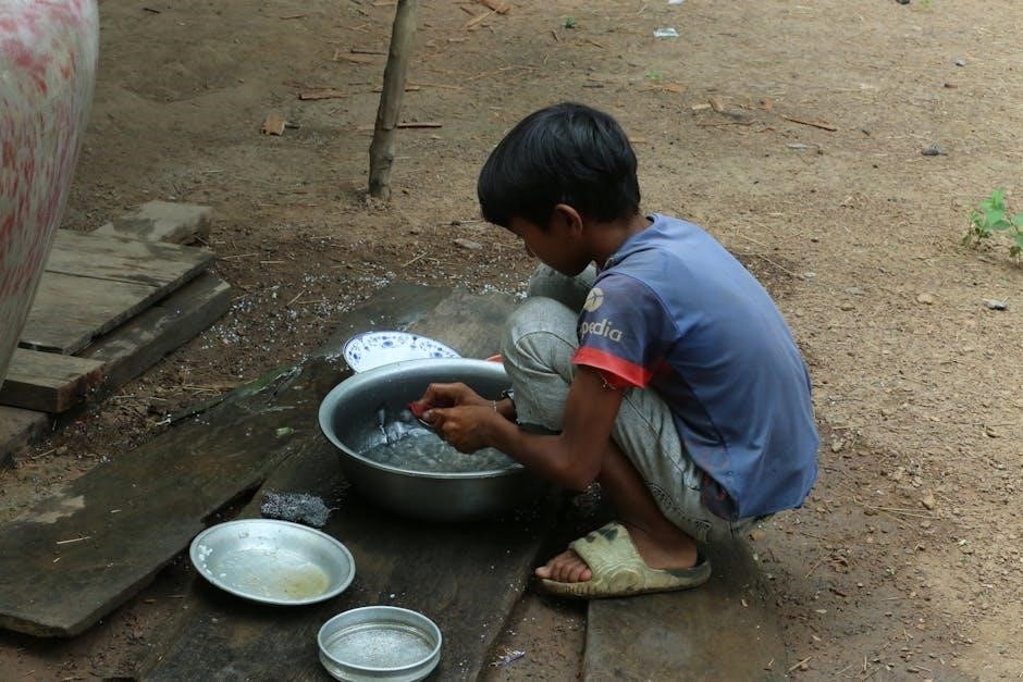 Indicators like “Rinse Aid Low” or “Salt Low” alert you to replenish supplies. The “Child Lock” symbol confirms activation, preventing accidental operation. Understanding these symbols ensures you can quickly interpret the dishwasher’s feedback and address any needs.
