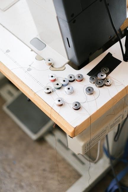 When storing for extended periods, consider removing the needle and bobbin to relieve tension. Secure any loose parts or accessories. Proper storage, guided by the manual, preserves the machine’s functionality and appearance, ensuring it’s ready for your next creative project.