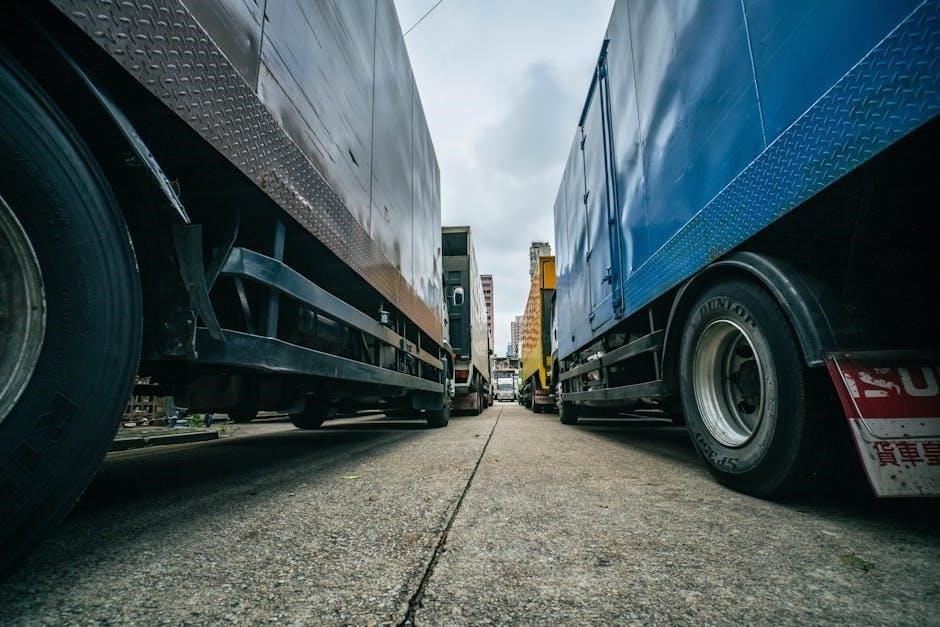 These PDFs specify the drum’s internal diameter and length, influencing the truck’s width. Online parts catalogs often include detailed drum schematics. Regulatory PDFs may limit maximum drum capacities based on axle load restrictions. Accessing these resources ensures accurate calculations for material requirements and logistical planning.